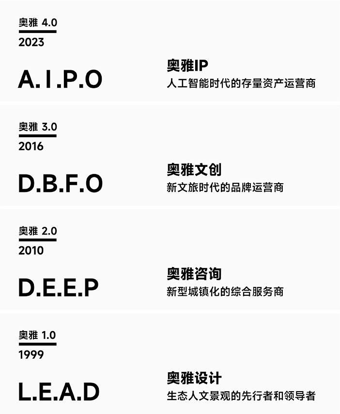 經(jīng)過多年的戰(zhàn)略布局與發(fā)展,在李方悅女士的推動下,奧雅股份從一家設(shè)計企業(yè)成功轉(zhuǎn)型成為新銳的輕資產(chǎn)文旅開發(fā)運營企業(yè)。奧雅以“創(chuàng)造更美好的人居環(huán)境”“讓空間賦予生命”為使命,以雙輪驅(qū)動+雙引擎為發(fā)展格局,即創(chuàng)意設(shè)計+親子文旅雙輪驅(qū)動、AIGC+IP雙引擎;經(jīng)營業(yè)務(wù)范圍涵蓋創(chuàng)意設(shè)計、親子文旅、數(shù)字科技等領(lǐng)域,為城市更新、鄉(xiāng)村振興、文化古城等不同場景提供全程化咨詢與綜合運營服務(wù)。在實現(xiàn)企業(yè)價值和理想的同時,解決當代中國的實際問題與需求,創(chuàng)造具有地域特色、人性化和充滿活力的新舊城市空間和綜合文化旅游項目。